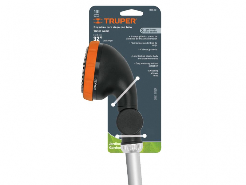 Душ садовый, используется для освежения и снятия усталости, особенно актуален в летний зной. Состоит из алюминиевой трубки, прочного пластикового оросителя с вращающейся головкой и тремя режимами подачи воды. Эргономическая рукоятка удобна для использования душа, имеет зажимом для непрерывной подачи воды.