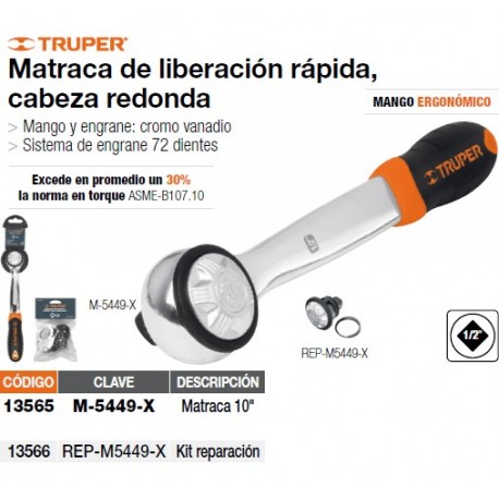 Ключ - трещотка с 72-х зубным механизмом, оснащен кнопкой для быстрой смены головки. Применяется при ремонте автомобилей, а так же других работах связанных с болтовыми и гаечными соединениями. Имеет эргономическую рукоятку из хром-ванадиевой стали с виниловым прорезиненным держатилем. Износостойкий рабочий механизм изготовлен из стали хром-молибдена.