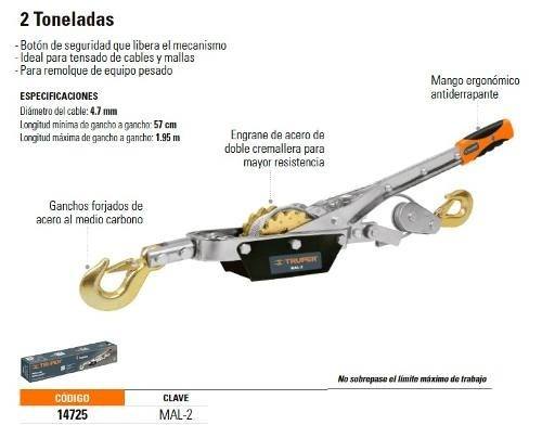 Лебедка механическая, артикул MAL-2. Имеет кованые стальные крюки из углеродистой стали, удобную не скользящую двухкомпонентную рукоятку, двойные закаленные шестерни обеспечивают большую надежность и долгий срок службы.