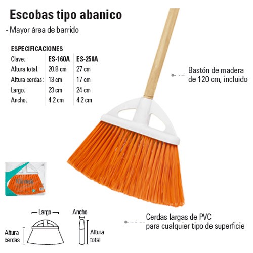 Метла большая, 1200 мм, 230 мм х 130 мм., арт. ES-160A, торговая марка «Klintek», входящая в концерн «Truper». Гибкие щетины из ПВХ предназначены для любого типа поверхности. Применяется для уборки мусора, листвы и других сыпучих веществ, как снаружи так и внутри помещений.