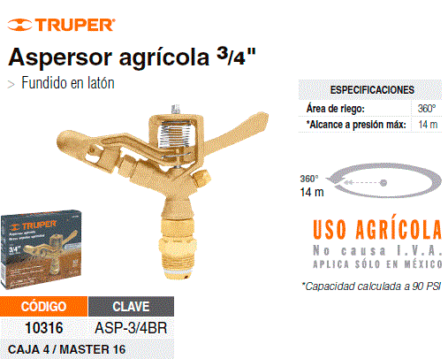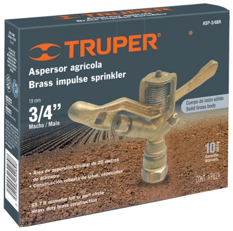 Ороситель импульсный (пульсирующий), применяется для полива газона, сада. Корпус оросителя выполнин из высококачественной латуни. При максимальном напоре (давлении) воды, максимальный диаметр орошения составит 14 м. Рекомендуемое рабочее давление от 2,5 до 3,5 атмосфер (40-50 PSI).