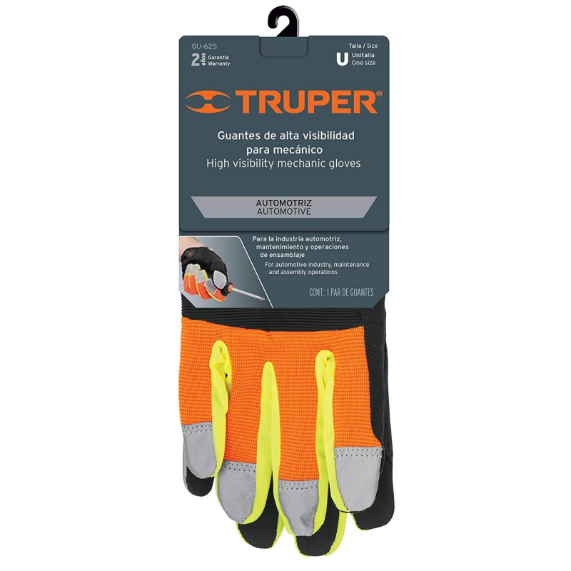 Перчатки механика со светоотражающей полоской, арт.GU-625, торговая марка «Truper». Применяются для механических, строительных работ, а так же обработки металла. Изготовлены из дышачей полиэфирной основой с укрепленными ладонями полиуретаном. Имеют крепежный регулируемый ремень на липучках.