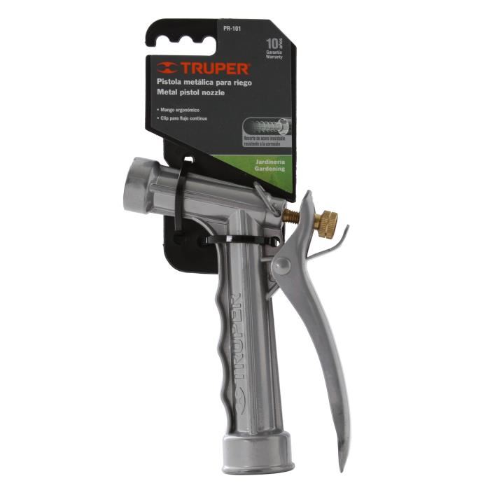 Пистолет поливочный садовый, предназначен для полива растений, мойки поверхностей и т.д. Изготовлен из прочного цинкового сплава с эргономичной удобной рукояткой. Пистолет имеет специальную регулируемую насадку для полива в двух режимах, а так же специальный фиксатор рукоятки для непрерывной работы, пружина рукоятки изготовлена из антикоррозионного материала. За счет небольшого веса удобен в использовании.