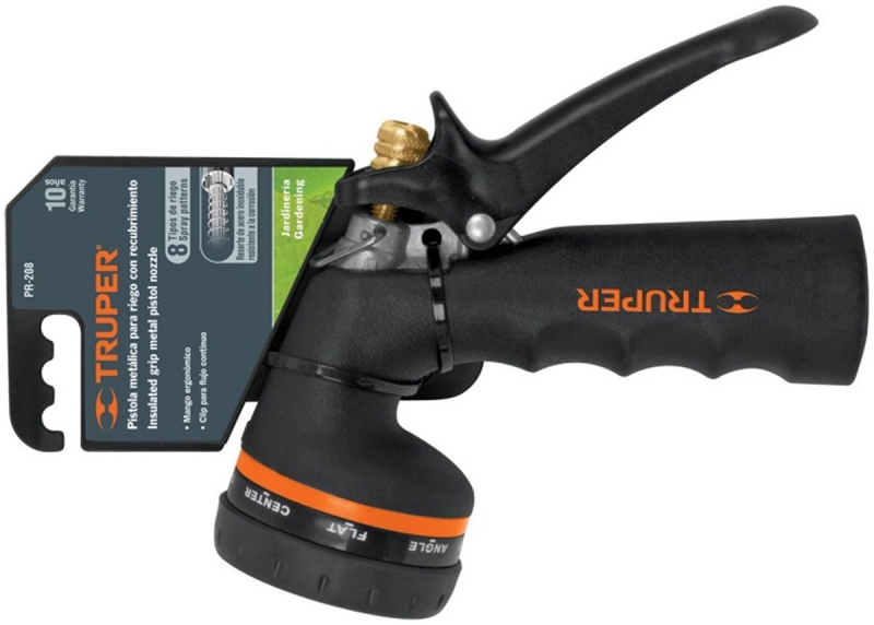 Пистолет поливочный садовый, предназначен для полива растений, мойки поверхностей и т.д. Изготовлен из прочного АВС пластика с эргономичной прорезиненной рукояткой. Имеет 8-мь режимов работы для полива , а так же специальный фиксатор рукоятки для непрерывной работы, пружина рукоятки изготовлена из антикоррозионного материала. За счет небольшого веса, удобен в использовании.