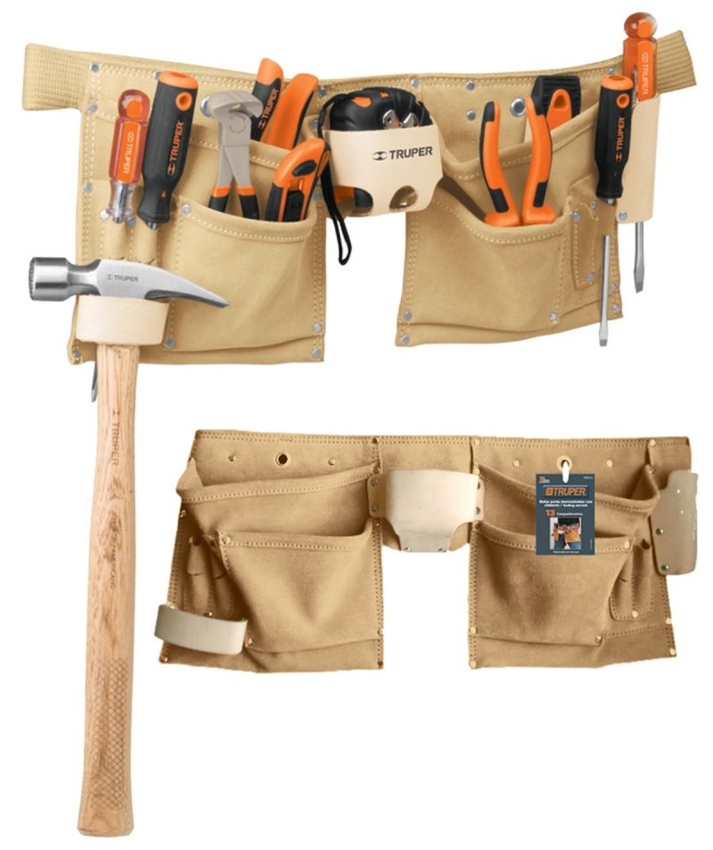 Поясная сумка для ношения инструмента, изготовлена из прочной кожи буйвола. Имеет 13-ть отсеков и крепкий ремень из 100% хлопка с регулируемой пряжкой. Область применения для электриков, столяров, механиков, строителей и.т.д.