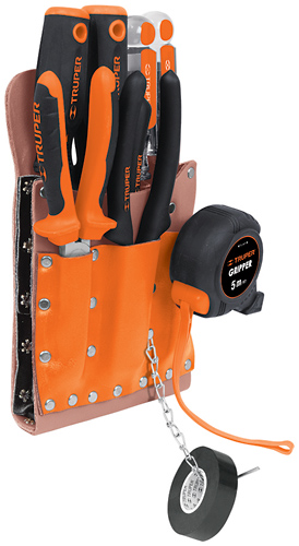 Поясная сумка для ношения инструмента, изготовлена из прочной кожи буйвола. Имеет 6-ть отсеков усиленных стальными заклепками. Область применения: для электриков, столяров, механиков, строителей и.т.д.