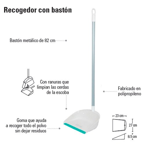 Совок бытовой с ручкой 820 мм, и совком 230 мм х 270 мм., арт. RECO-11B. торговая марка «Klintek», входящая в концерн «Truper». Изготовлен из полипропилена с мягким скребком для более качественного сбора мусора и пыли. Ковш совка имеет специальные прорези для очистки щетины метлы.
