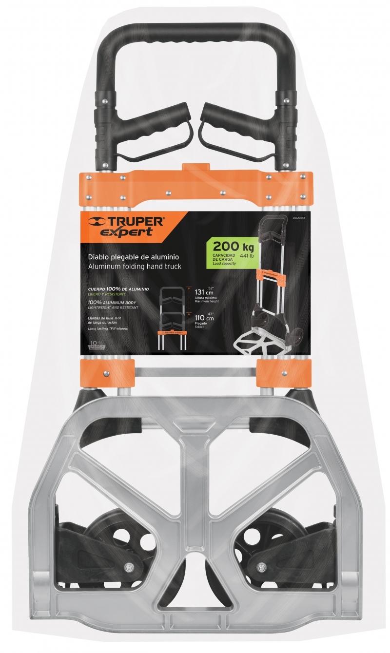 Тележка ручная, алюминиевая, максимальная нагрузка 200 кг., арт. DIA-200AX, торговая марка «Truper». Имеет прочный и легкий 100% алюминиевый корпус. Тележка предназначена для перевозки грузов до 200 кг. Идеально использовать: магазины, рынки, склады, а так же для бытового использования. Тележка в складном состоянии имеет компактные размеры. Долговечные TPR и полипропиленовые резиновые колеса (диски). Двухпозиционные поворотные ручки для дополнительного комфорта. Телескопические ручки с удобными держателями. Складные колеса и база собираются в рабочее положение за одну операцию.