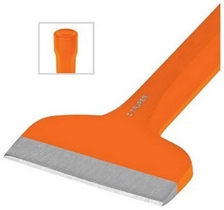 Зубило каменщика, торговой марки Truper, артикул CL-3-1/2X8, применяется для обработки камня, кирпича, тротуарной плитки и т.д. Рабочая часть инструмента изготовлено из хромованадиевой стали, рукоятка имеет расширенный затыльник для более точного попадания при ударе.